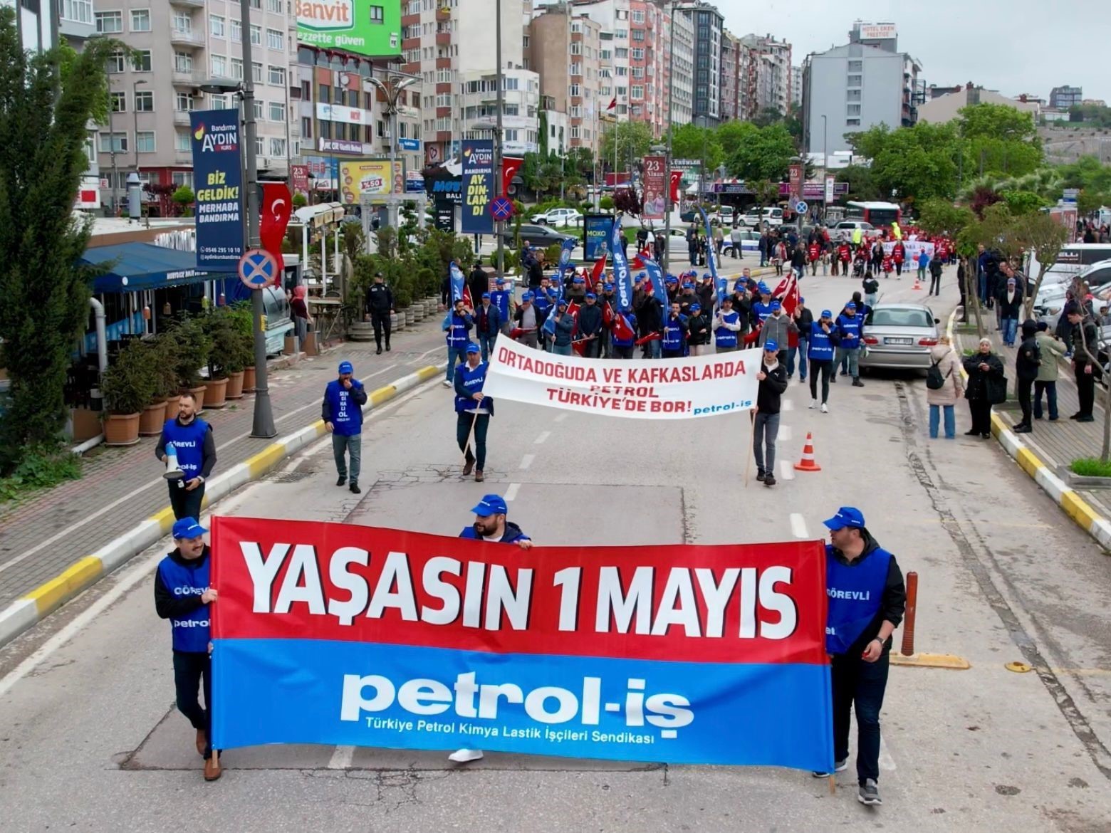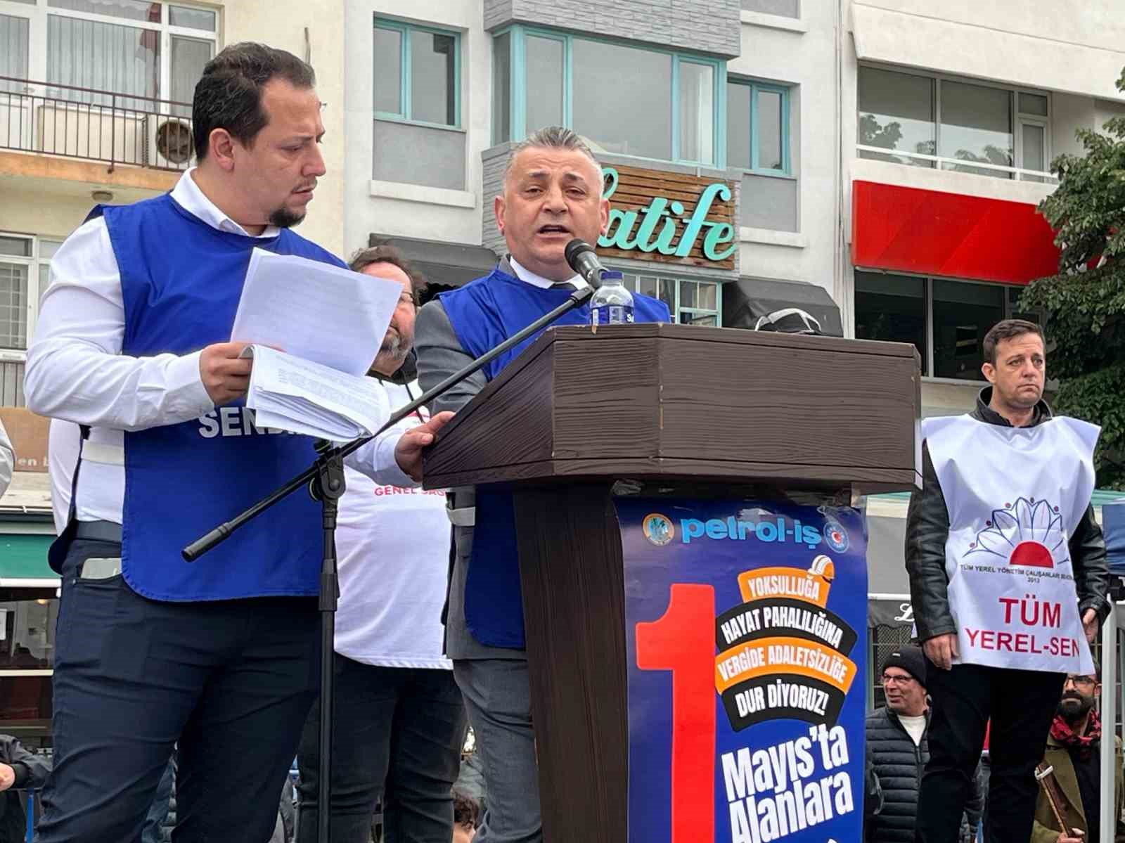 Tuncay Topuz konuşmasında, “Eşitlikten ve adaletten yana olanlar, insanca bir yaşam ve güzel bir gelecek isteyenler, 1 Mayıs birlik, mücadele ve dayanışma gününüz kutlu olsun. Bugün burada sömürünün, açlığın, yoksulluğun ve baskının olmadığı insanca bir dünya özlemiyle bir araya geldik. İşyerlerinde insan onuruna yakışır çalışma şartlarını savunmak için buralardayız. Tüm emekçiler için sömürü ve zulme karşı sesimizi çıkarmak için toplandık,” dedi.