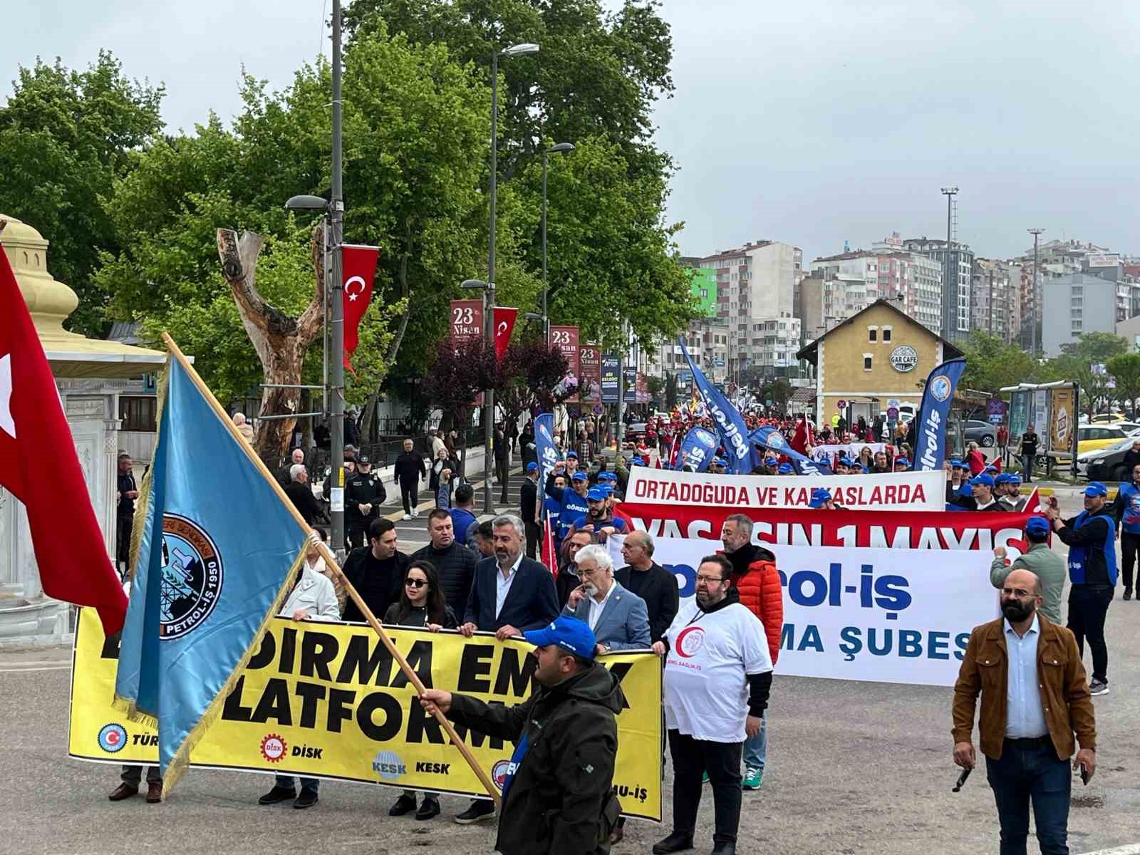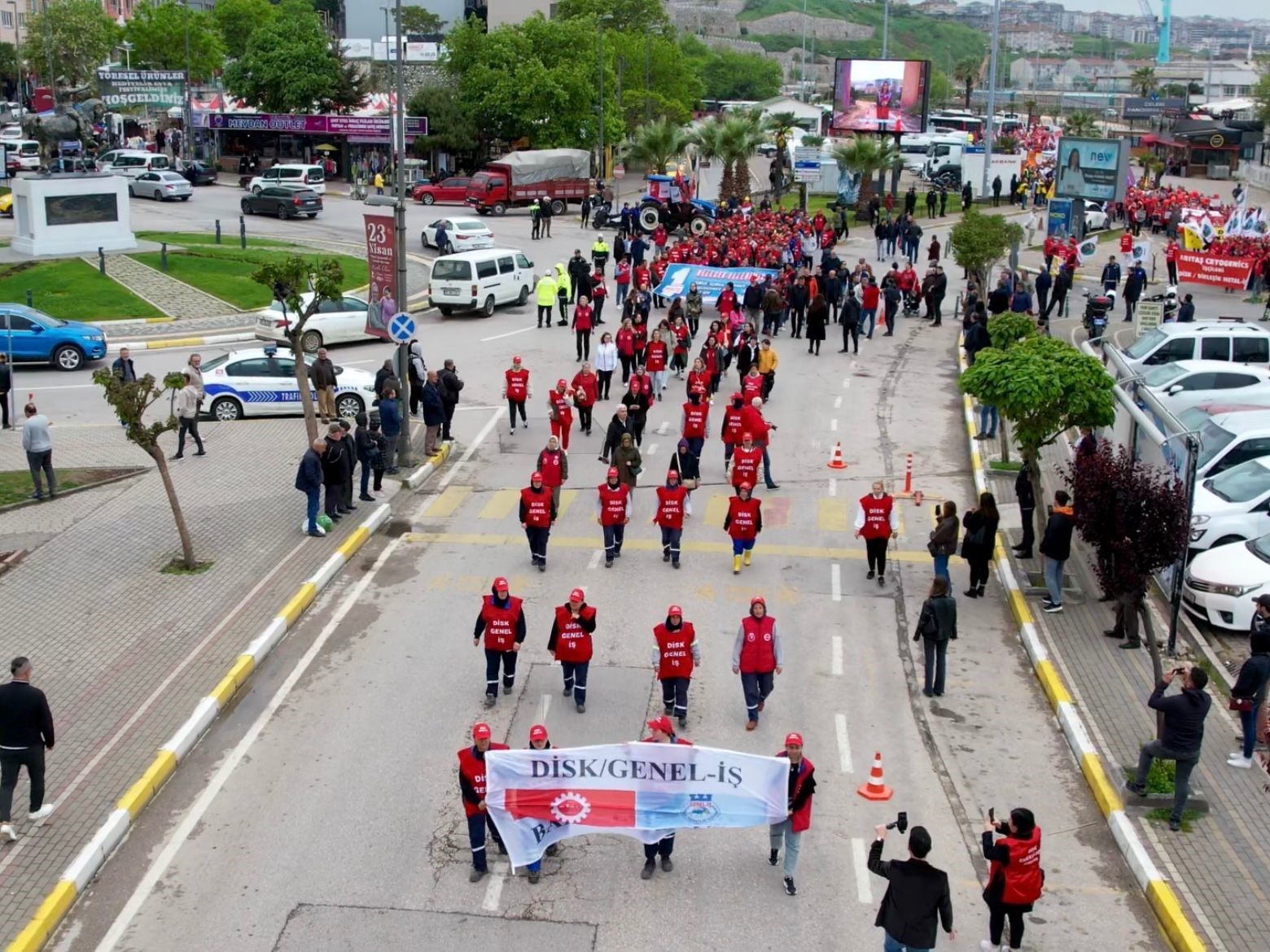Balıkesir’in Bandırma ilçesinde, “1 Mayıs İşçi Bayramı” dolayısıyla yürüyüş ve kutlama programı yapıldı.