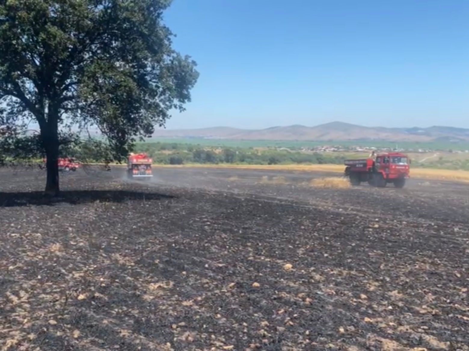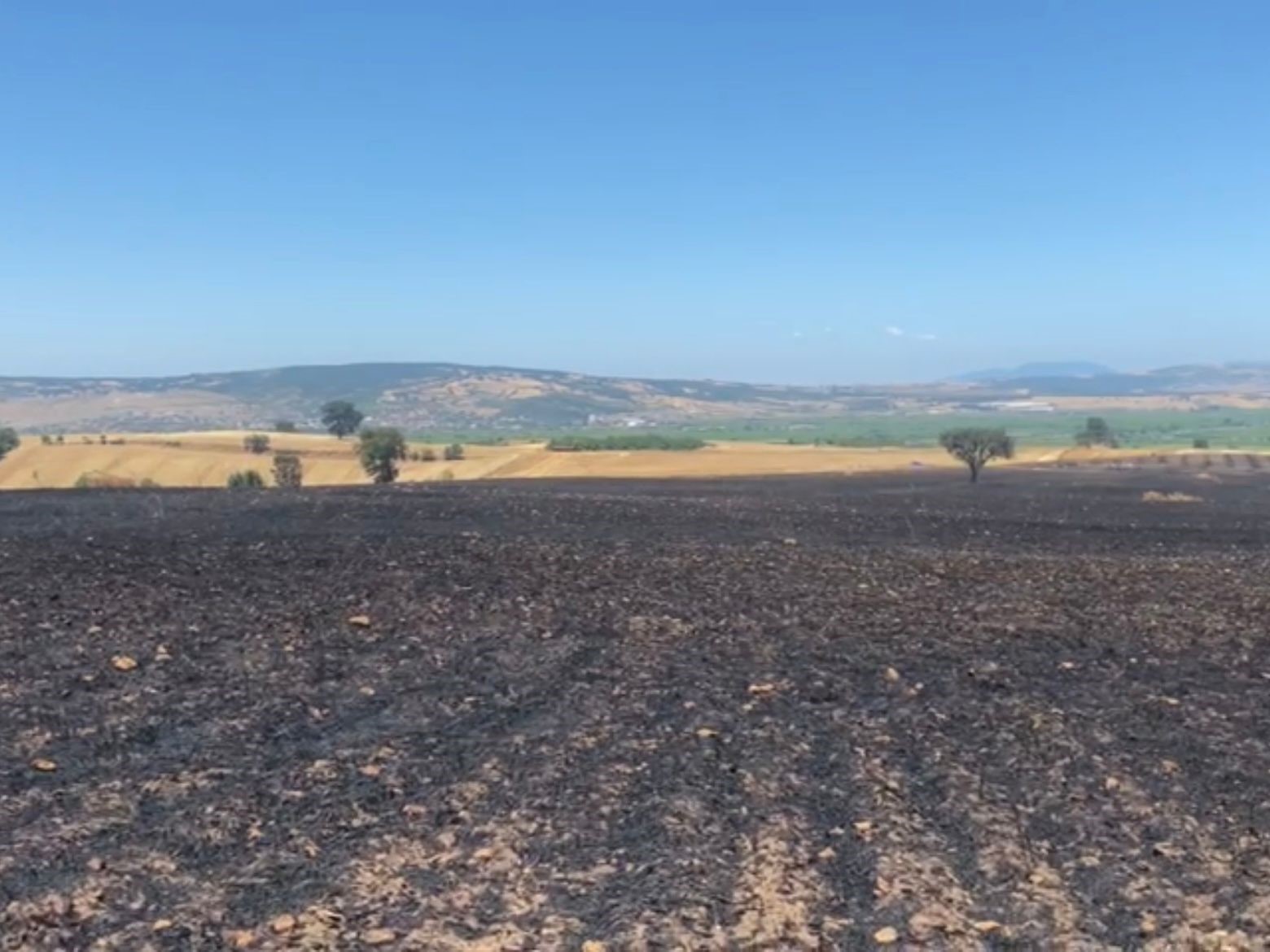 Balıkesir’in Gönen ilçesindeki buğday ekili tarlada çıkan yangın sonucu 35 ton buğday yandı.