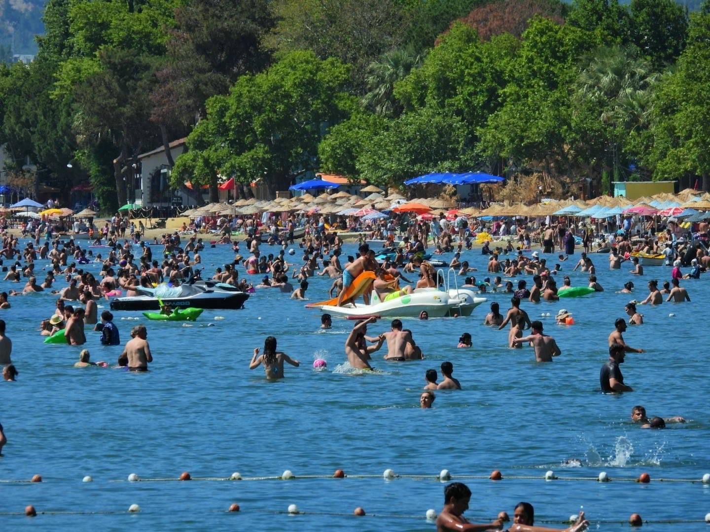 Balıkesir’in gözde turistik ilçelerinden biri olan Erdek, Kurban Bayramı’nda tatilcilerle doldu taştı. Tatilcilerin en çok tercih ettiği 2.5 kilometrelik Çuğra plajı ve 1 kilometrelik Kurbağlı plajında yoğunluk zirveye ulaştı. Her iki plajda da iğne atsan yere düşmez dedirtecek cinsten manzaralar ortaya çıktı. Deniz ve güneşin keyfini çıkaran onbinlerce tatilci, sezona büyük umutlarla hazırlanan esnafın da yüzünü güldürdü.